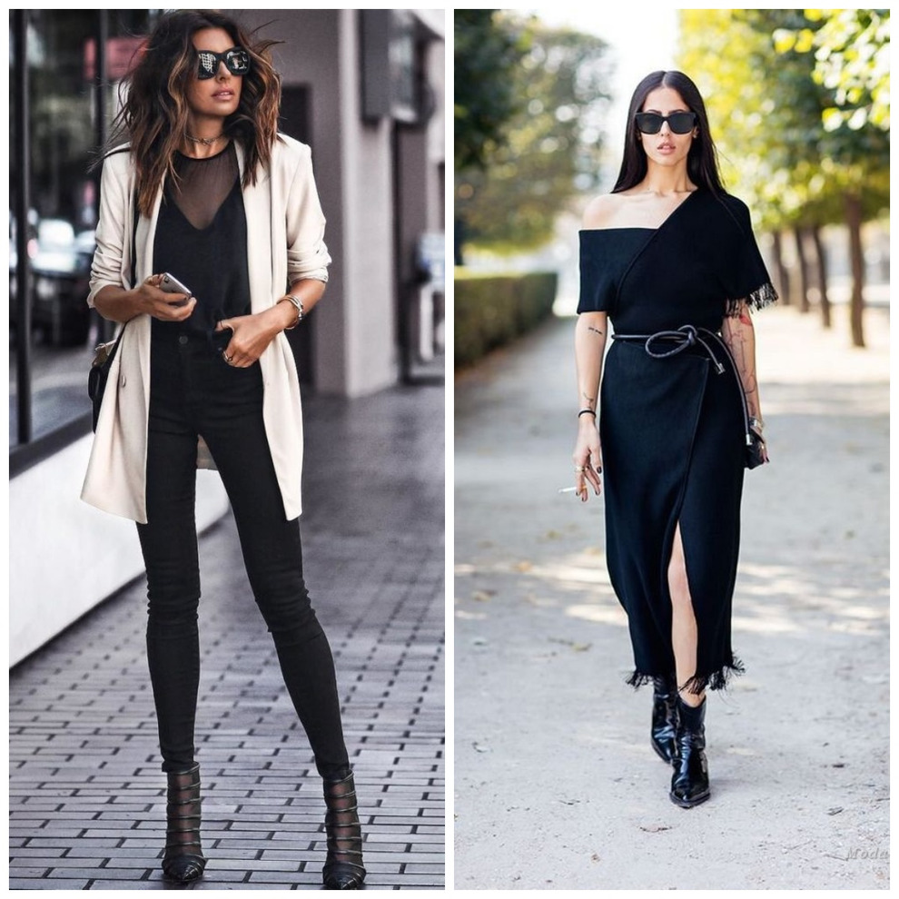 Если у вас в гардеробе еще нет черных вещей, мы настоятельно рекомендуем вам исправить это. Черные брюки, платья, юбки подходят женщинам с любым типом фигуры и цветом волос. Он делает акцент на глаза и тон кожи. При комбинировании черного с другими цветами можно создать разные образы – от строгого до романтичного.