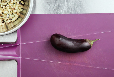 1. Нарезать мелкими кубиками лук и баклажаны. Баклажаны посыпать солью и дать им полежать несколько минут, чтобы пустили сок.
